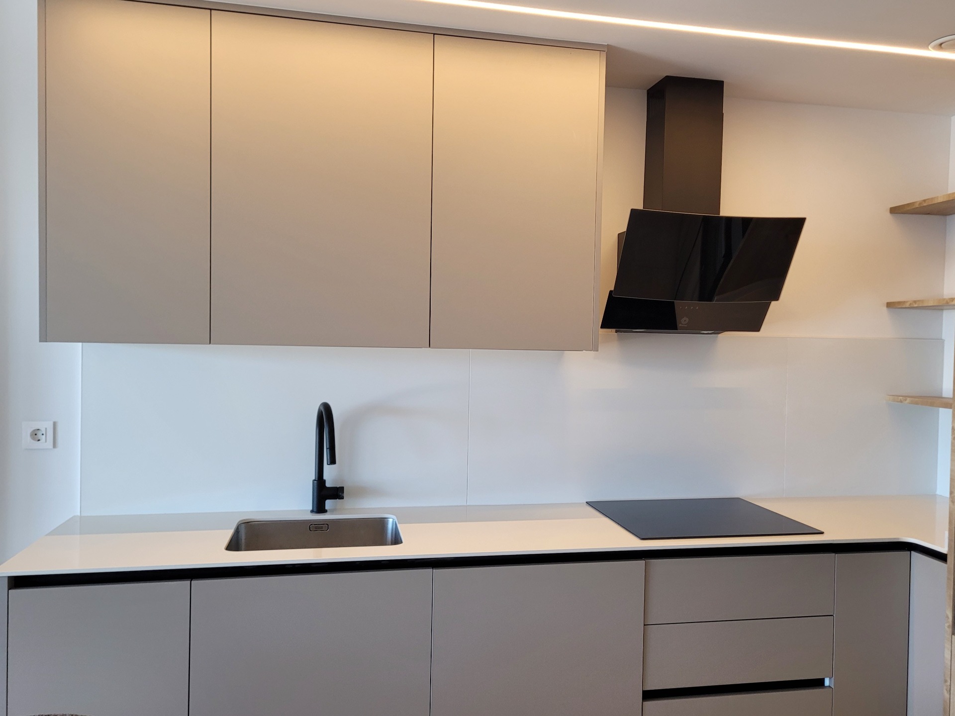 De ruime living (30m²) met open keuken is voorzien van alle comfort: